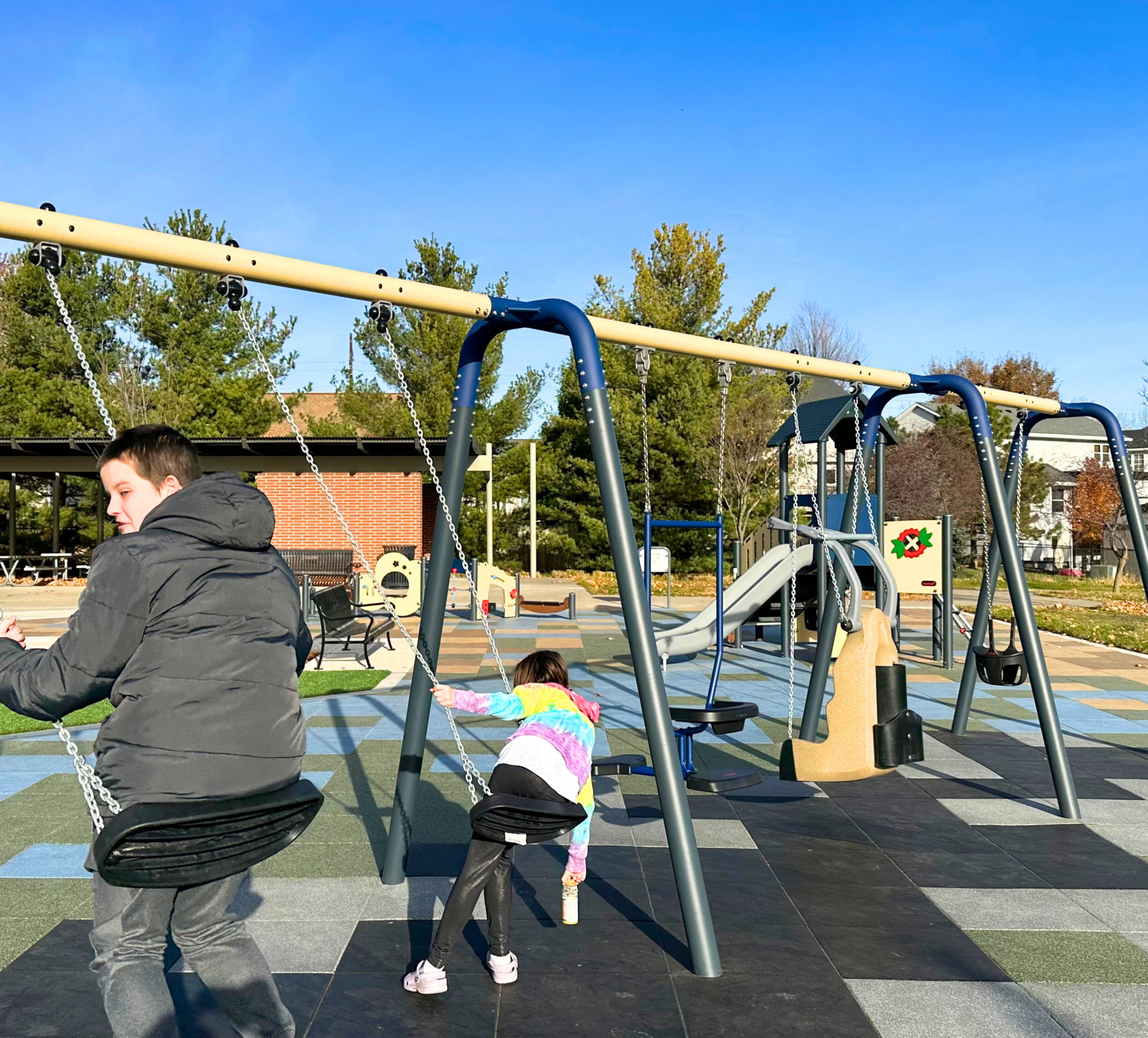 - Swings (toddler bucket, inclusive bucket swing, standard and toddler/adult swing)