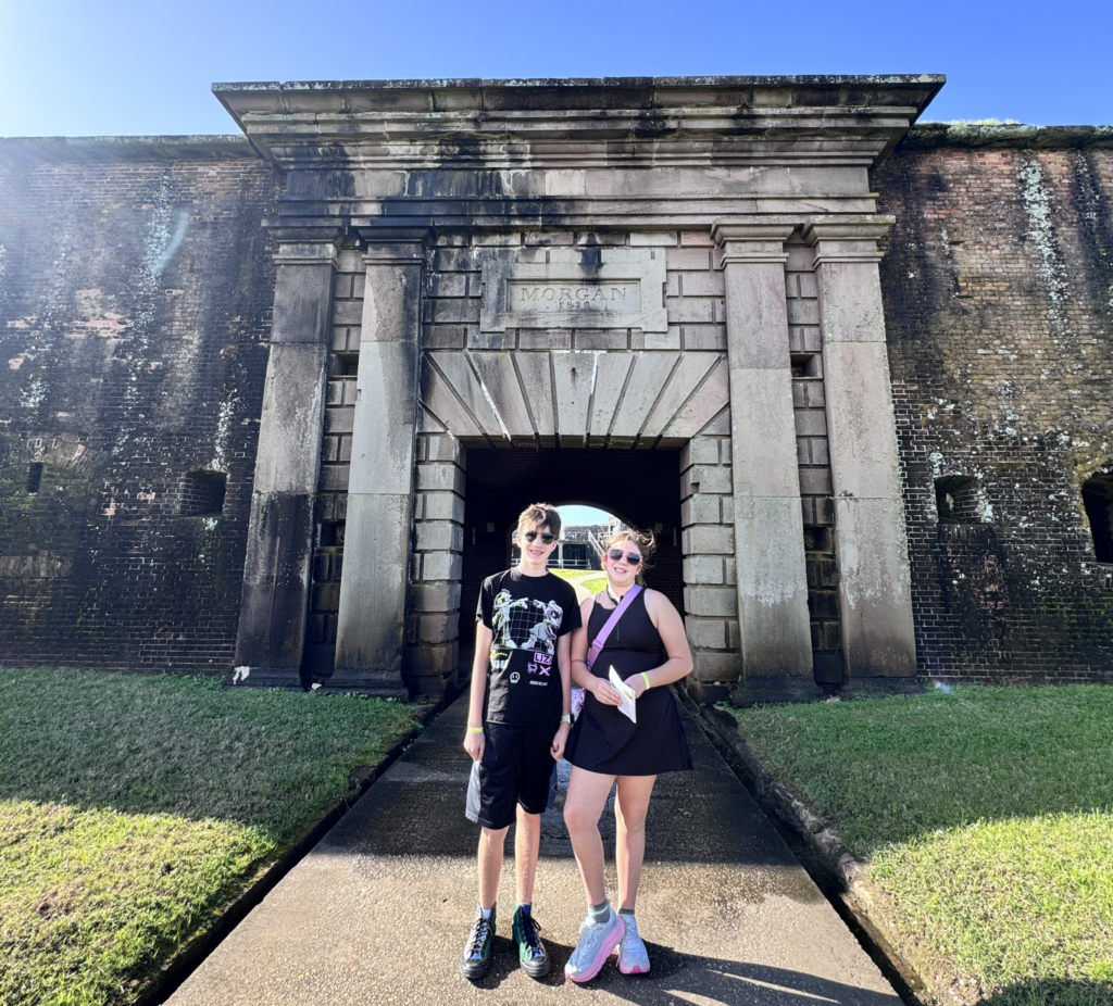 For families who enjoy history and exploring, Fort Morgan Historic Site is worth a visit. Located where Mobile Bay meets the Gulf of Mexico, this historic fort offers a mix of learning and beautiful scenery. Beyond the history, there are beaches, picnic areas, and nature spaces that make it easy to turn your visit into a full outing. We were all in awe of this incredible spot and how much history it held.
