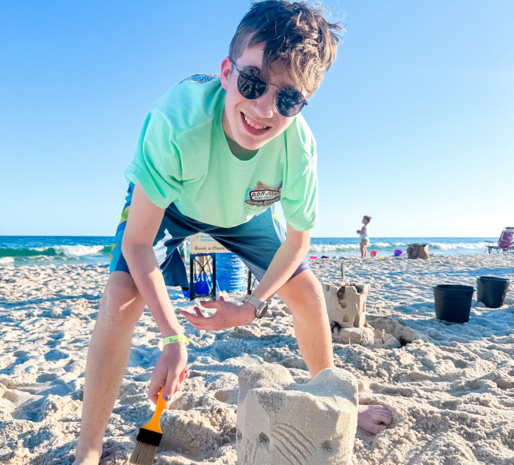Another unique activity is booking a session with Sandcastle University. They bring everything you need right to your spot on the beach and teach families how to build impressive sandcastles. It is hands-on, creative, and something kids will talk about long after the trip is over. We had no idea that you could become a pro and certified in sandcastle building!