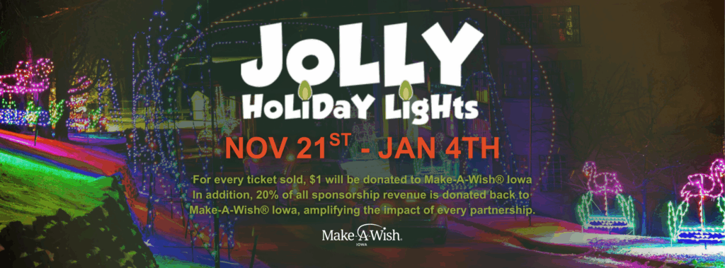 Jolly Holiday Lights has always been a major fundraiser for Make-A-Wish Iowa. Although the nonprofit isn’t organizing the event anymore, Winterland is committed to keeping Make-A-Wish Iowa as the charitable recipient. This year, $1 from every ticket sold will go directly to Make-A-Wish Iowa, helping to grant wishes for children with critical illnesses across Iowa.