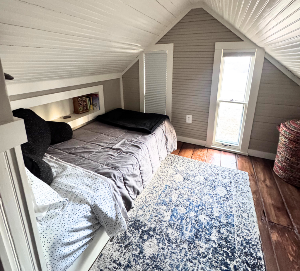 If you have kids, they will love the upstairs loft! This spot has two twin size beds that are comfy. Great for kids, but also perfect sleeping arrangements if you are planning a girls weekend.