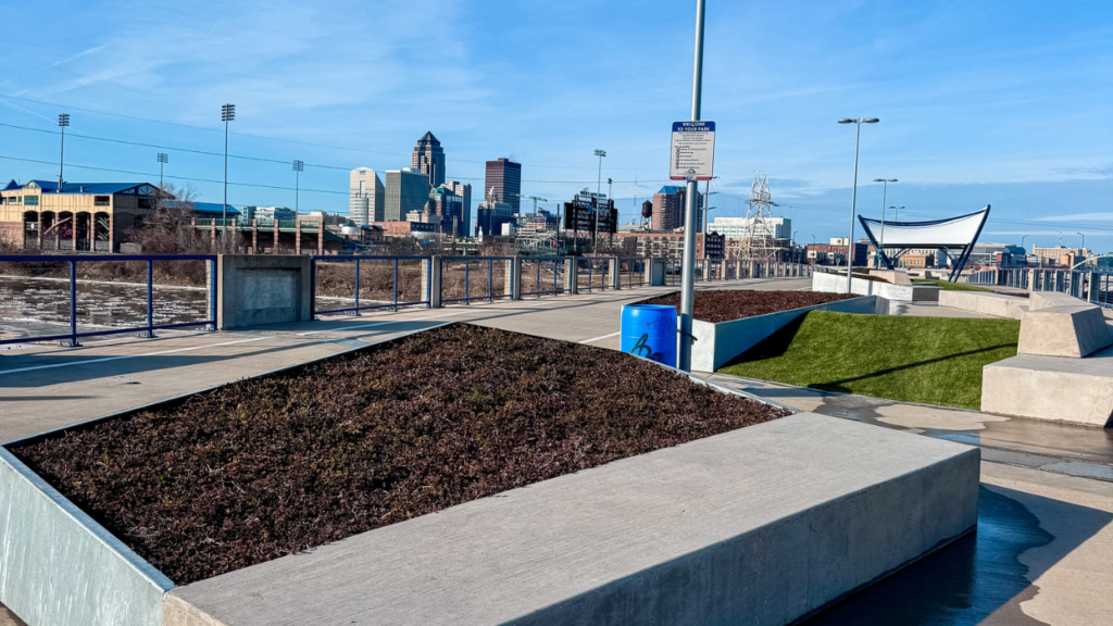 Riverside Bridge Park is one of the most unique outdoor spaces in downtown Des Moines and a fun stop for families exploring the city on foot or by bike. This is Iowa’s first park built directly on a bridge. This elevated green space sits along the SW First Street bridge just south of Principal Park, offering beautiful views of the Des Moines River and downtown skyline. It is a great place to let kids burn off energy and enjoy a new perspective of the city while walking, biking, or scootering through the area.