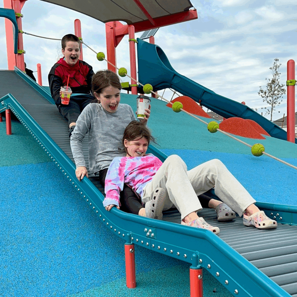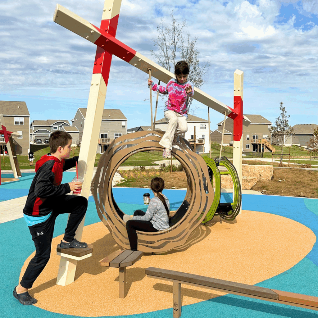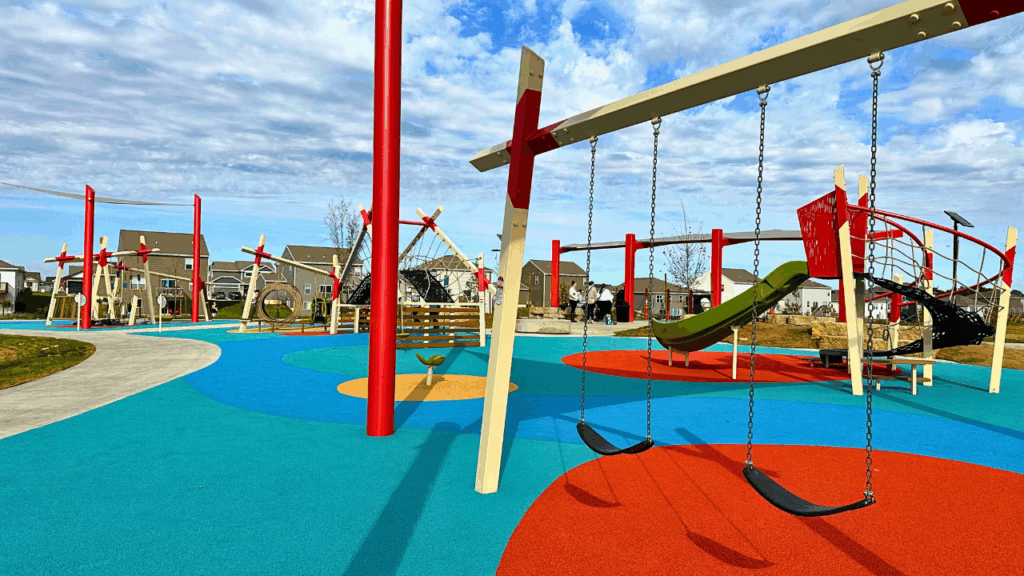 Waukee’s newest park is absolute gold! Spring Crest Park immediately will pull your kids in. This park features a hillside playscape that will keep kids of all ages engaged! My kids absolutely loved the giant roller slider! It was so fun to see all of the different ways they slid down and climbed up the hill through all the different ropes, boards, and knolls.