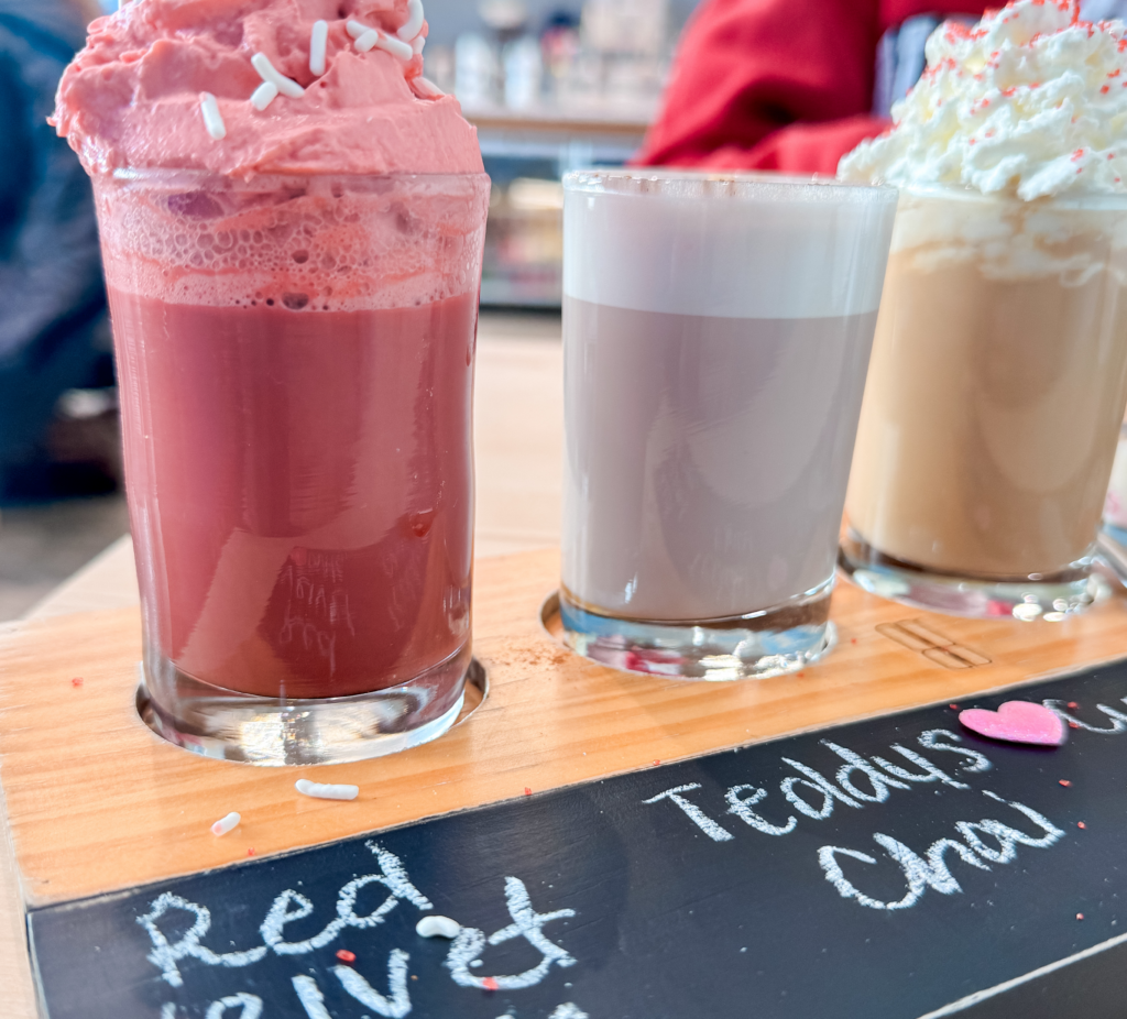 Take flight with the cutest Valentine coffee flight. A great day date experience or even a kiddo experience. Grab some flights of toast too if you are hungry!