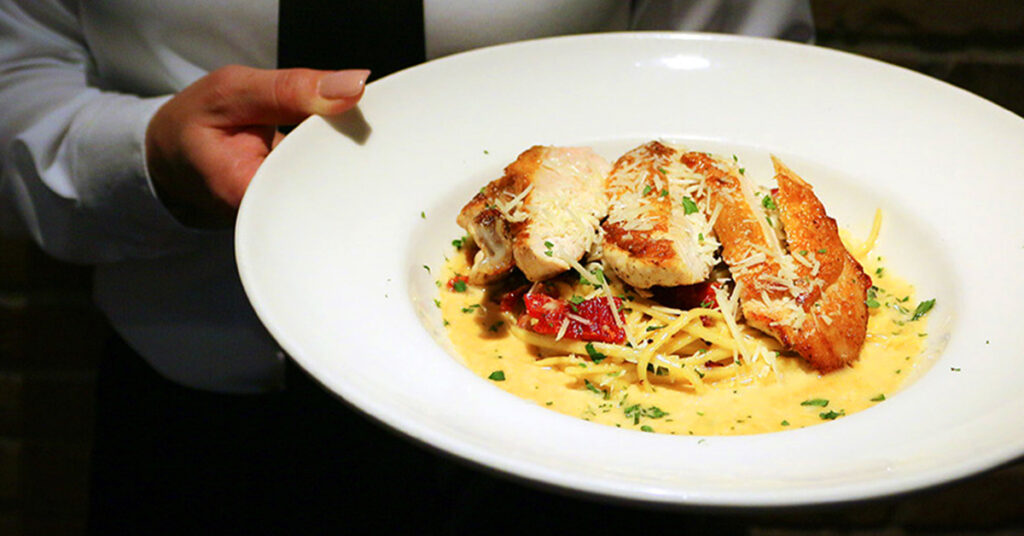 If you’re celebrating something special (or just want to pretend that you are), Johnny’s Italian Steakhouse delivers on steaks, seafood, and pasta all in a cozy, polished setting. It’s perfect for date nights or adult dinners that don’t involve ordering off the kids’ menu.