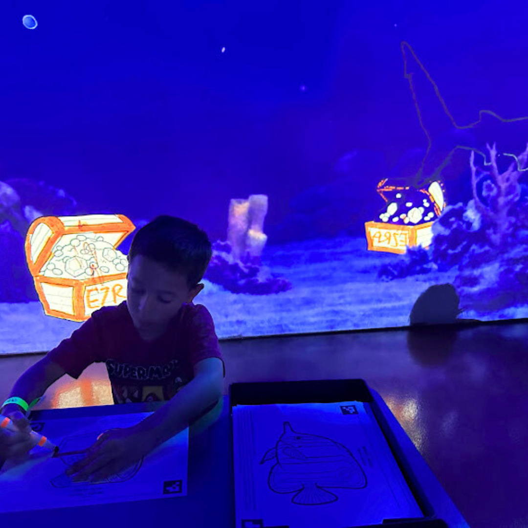 Observe more Fishing Halls of Fame before going to our favorite exhibit, Shipwreck Reef. Color a picture and watch it come to life on the wall as a fish or buried treasure. Next, touch the many large rays that circle the reef or purchase small fish to feed them. My boys loved this, and we spent the most time here.